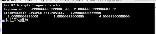 在用Fortran求矩阵本征值的时候,调用了MKL里面的DSYEVD函数,程序可以运行,但是好像并没有执行这一语句。 程序如下: 程序运行没问题! 但是CALL DSYEVD ( 'V', 'U', N, A, LDA, W, WORK, LWORK,IWORK, LIWORK, INFO ) 这一句貌似没有执行,因为返回的结果还是原来的矩阵! 请问这是什么问题呢?谢谢! 1.jpg |
