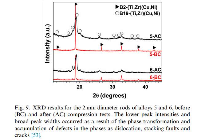 如图所示,这个非晶中析出相的相变问题,这个Ti基非晶中的B2 (Ti,Zr)(Cu,Ni)相和B19 (Ti,Zr)(Cu,Ni)相是怎么确定的?这两个B2和B19相是有什么判定方法吗?用Jade来分析元素的时候应该不会直接出来的是这个(Ti,Zr)(Cu,Ni)相吧?有没有相关的文献或者书籍推荐呢? 附件中有图片! QQ截图20141106093237.jpg |