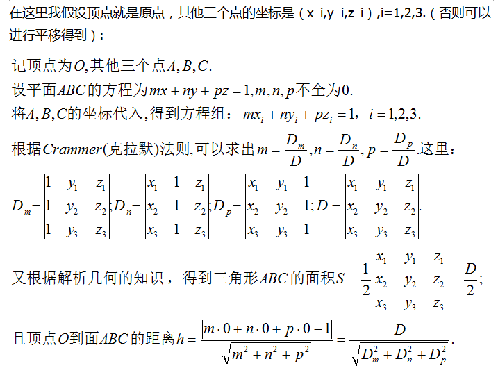 求四面体体积公式和点的法向量求解。 已有2人参与