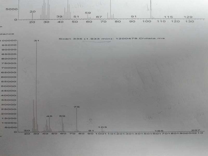 做的用GC-MS联用仪测浓香型白酒的实验,这两个质谱图是什么物质啊,求解