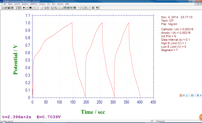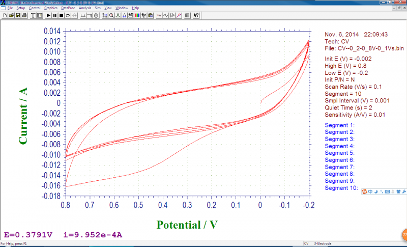 想尝试做超级电容器,但还搞不懂测试的方法。据说要先扫CV定电压范围,扫完之后发现不会看。。。求指导根据这个CV图,应该在什么范围内做充放循环? 我胡乱试了一个范围之后,发现充电曲线并不像文献里的那样是一条直线上去的,而是中间有个拐弯的地方,这个正常吗? ![]() ![]() ![]() CV.png cp.png |