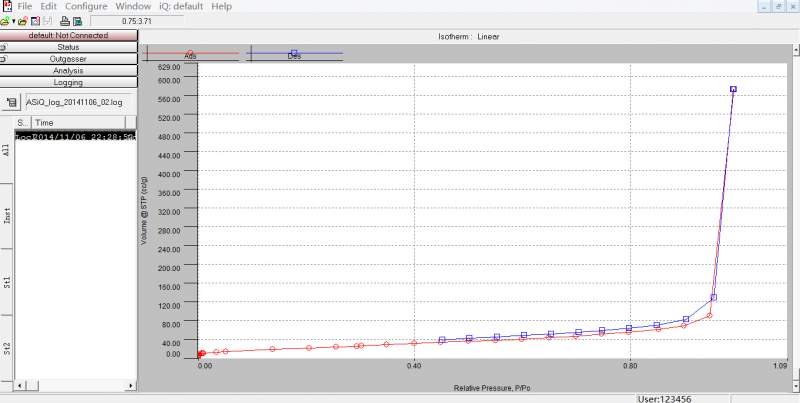 各位虫友,我有个康塔仪器BET测试问题:团聚成微米颗粒的纳米材料在氮气BET测试中,脱附曲线测试缓慢,且在P/P0=0.45左右时,由于达不到想要的压力点(log文件中写着),导致仪器开始一直retry(至少10h以上),如下图所示。重复了同样的测试(应该不是仪器的问题,没有报错,且测试别的样品没有什么问题),还是出现这个的情况,不知什么原因,请大家帮忙分析一下,多谢!