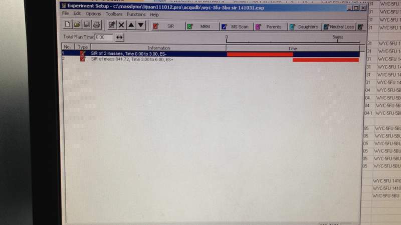 哦,是一个离子源,可是前面有做0~3min是ES-模式,3~15min是ES+模式,ES-模式下的基线依然是0,而ES+模式基线是正常的。