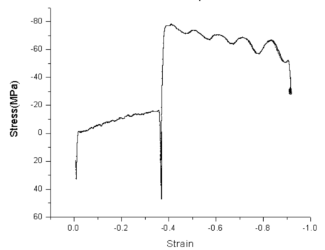 你这曲线做的有问题吧,应力应变怎么能出现负值,gleeble数据前面有部分不能用,因为那部分还没有开始变形,在利用origin作图的时候应该去掉的。