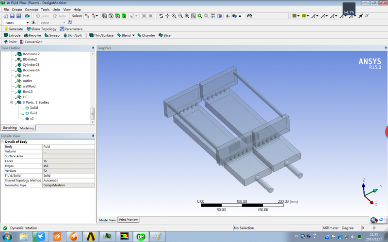 由于初来乍到,囊中羞涩,问题较多,金币很少,大神见谅! 我学ansys一个多月,临时需要做这么个水冷却的热分析,实物模型如图一(依靠分析进行改进),水道初步如图二,自己运行如图三: 现有如下问题: http://image.keyan.cc/data/bcs/2 ... _1415368842_439.png (1)水道比较复杂,网格质量零点几算基本达标,抑或是需要学习更专业的mesh工具? ![]() ![]() (2)有两种材料的固体区,冷却液是水,需要解的方程模型中 heat -exchanger是否需要激活? http://image.keyan.cc/data/bcs/2 ... _1415368935_173.png (3)固液接触面很复杂,也是只生成一个shadow面?是否系统判断有遗漏? (4)自动生成很多wall-N,这是我之前没有命名的呀,难道系统重新编排了?如图三的蓝底部分,激活highlight也不现实这几个面还有一个interior,该如何处理? 3.png 2.png 1.png |