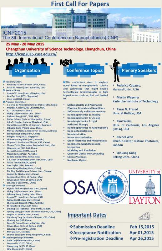 2015 ICNP-第八届国际纳米光子学会议已有13人参与