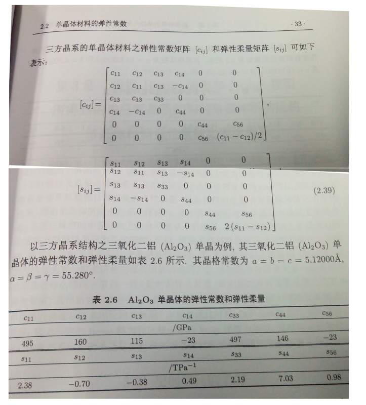 求教关于Al2O3晶体的材料常数问题