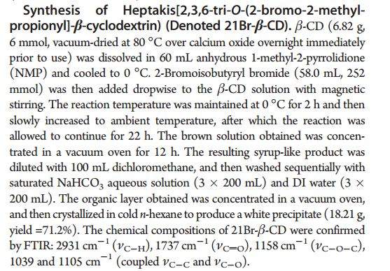 关于β-环糊精接枝2-溴异丁酰溴成大分子引发剂ATRP反应问题
