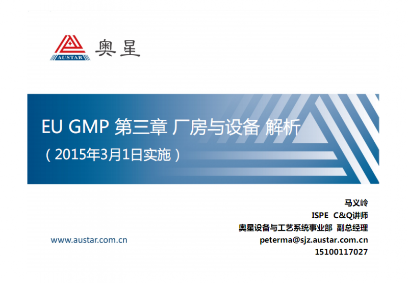 2014.10马义岭—EU GMP 第三章 厂房与设备解析(2015年3月1日实施)[录音和PDF]