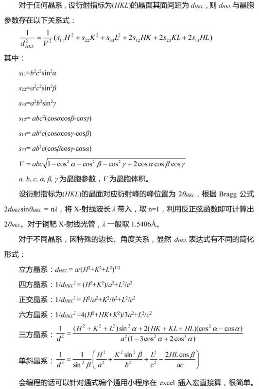 已知XRD图峰位置角度和晶面间距d,怎么判断是什么晶系