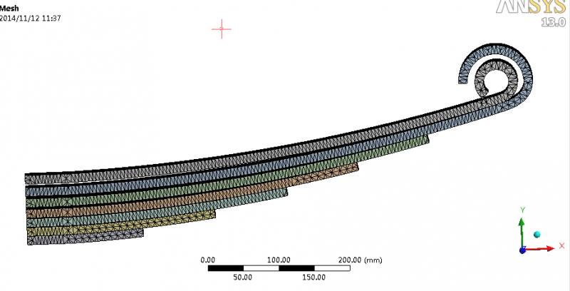 本人最近在做这个可是边界条件有些不是很明白,求帮助!!!自由状态下的多片板簧,片与片之间并没有接触,但许多论文里面是直接加位移约束让位移等于各片间隙之和,还有相邻叶片的骑马螺栓之间用Glue命令粘接在一起等等,这些都不是很懂,我大概按着这些来做但是有限元结果却是明显错误的!!! 1.png 2.png |