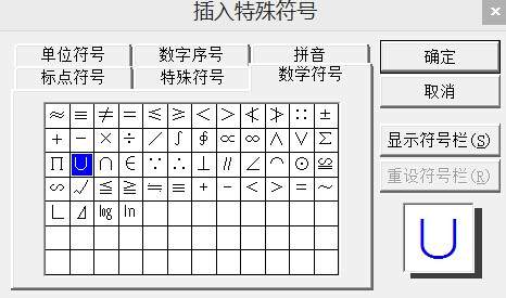 | 请教一下,在word 2010 中如何打出并集符号(非公式),我在里面找了好久,看到了交集符号,但始终没有找到并集符号。 |