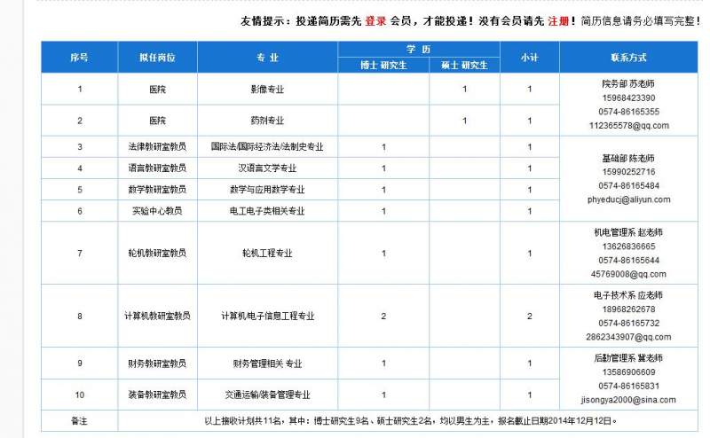 一、学院简介 公安海警学院是公安部直属的现役制普通高校,主要为公安现役部队和中国海警培养指挥管理和专业技术人才。学院坚持政治建校、特色办学思想,牢固树立开放办学理念,着力提升人才培养质量和教育教学水平,正朝着国内一流、国际知名军事警察院校的目标奋进。 二、招聘专业 友情提示:投递简历需先 登录 会员,才能投递!没有会员请先 注册!简历信息请务必填写完整! http://image.keyan.cc/data/bcs/2 ... _1415776333_349.jpg 备注 以上接收计划共11名,其中:博士研究生9名、硕士研究生2名,均以男生为主,报名截止日期2014年12月12日。 三、接收条件 接收对象必须同时符合下列条件: (一)政治合格,现实表现良好,入伍态度端正,志愿献身公安保卫事业。必须是中共党员或共青团员,符合公民应征入伍的政治条件。具体按照教育部、公安部、总政治部《关于军队院校招收普通中学高中毕业生和军队接收普通高等学校毕业生政治条件的规定》(〔2001〕政联字第1号)执行。 (二)参加全国普通高等学校(含研究生培养单位)招生统一考试录取的全日制普通高校应届毕业生,并按时获得毕业证书和相应的学位证书(截止2015年7月10日前)。以进入国家“211工程”高校,教育部、公安部直属院校和省、自治区、直辖市所属重点高校毕业生为主。 (三)接收的硕士研究生、博士研究生年龄分别在29、34周岁(截止2015年8月31日)以下。工作急需的博士研究生、少数民族毕业生,年龄可放宽1岁;曾经服现役的毕业生,年龄可放宽2岁。 (四)符合《中国人民解放军院校招收学员体格检查标准》。双眼裸视力,拟补充到指挥岗位的毕业生不低于4.6,拟补充到技术岗位的不低于4.3。 同等条件下,党员、学生干部、三好学生和曾服现役的毕业生,以及在学术、科研上有突出成果的毕业生和有政策规定予以照顾的毕业生优先接收。 下列对象不属于接收范围: (一)广播电视大学、函授大学、职工大学、业余大学、自修大学、高等教育自学考试等非普通高等院校毕业生; (二)职业大学、职业技术学院、民办大学、独立学院、成人高校毕业生; (三)普通高等院校招收的委培、自费、定向毕业生; (四)军队院校为地方培养的毕业生; (五)有国(境)外学习经历的毕业生; (六)在校学习期间,必修课程重修和补考累积4门以上或1门以上补考不及格的毕业生; (七)结业生、肄业生、中专起点大专生、预科生、未获得学位的本科以上毕业生; (八)被作留级处理或中途休学超过半年(不含应征入伍)的毕业生,在校期间因违反纪律或其它原因受过处分的毕业生。 四、考试考核 接收对象必须通过知识能力统一考试和考核。凡未通过知识能力统一考试或者考核不符合条件的,一律不得列为接收对象。知识能力统一考试时间、内容、组织形式等由公安部政治部确定。 考试考核的内容及程序: (一)资格审查。根据个人报名材料从毕业院校性质、所学专业、学历层次、学缘结构、年龄、男女比例等方面进行合理筛选。报名截止时间2014年12月12日。 (二)知识能力统一考试。主要内容:政治理论、法律知识、科技知识、公文写作知识和行政职业能力。 (三)面试。主要了解接收对象的综合分析能力、语言表达能力、应变能力、组织协调能力、人际交往意识、自我情绪控制能力、入伍动机、行为举止和形象气质等。 (四)身体检查。主要检查接收对象身体状况是否符合《中国人民解放军院校招收学员体格检查标准》要求。 (五)体能测试。主要测试接收对象的体质体魄和身体协调能力,作为能否适应部队工作需要的依据。测试项目:中长跑(男生1500米在8分30秒内,女生800米在6分钟内为合格)、立定跳远(男生1.7米,女生1.6米以上为合格)、俯卧撑(男生,每分钟20个以上为合格)、仰卧起坐(女生,每分钟20个以上为合格)。 (六)心理素质检测。统一使用《公安民警职业心理能力测试》软件,对接收对象的性格、价值观、意志品质和气质等方面进行检测。 (七)政治审查。主要内容:政治立场、政治观点、政治敏锐性和政治鉴别力;思想品德、遵纪守法和奖惩等现实表现;学习态度和学业成绩;家庭成员和主要社会关系情况;兴趣爱好和特长情况;身心健康状况。 审查程序:审查学生档案;听取学生所在院系和学生管理、学校保卫等部门情况介绍;向考察对象的老师和不少于5名同学了解情况;对校外住宿生,走访住地派出所和居委会等了解掌握其在校外的表现。 (八)适岗考核。主要通过试讲、跟班作业等方式,考察接收对象是否具备履行岗位职责相关的能力素质。 经考试考核符合接收基本条件的,根据考试考核成绩、按照接收计划择优确定拟接收对象,并草签接收协议。 五、岗前培训 接收后,统一进行岗前培训。内容包括:入警培训、岗位任职培训和当兵锻炼。入警培训时间不少于6个月,主要进行入伍教育、政治思想教育、理想信念和职能使命教育、优良传统教育、条令条例和作风纪律教育以及军政基础训练。 六、职级待遇 经岗前培训合格的,办理入伍手续。入伍时间从报到当年的6月30日算起。职级待遇按照总参谋部、总政治部、总后勤部有关规定执行。 在首次评授警衔或定文职级别、评任专业技术职务、确定专业技术等级以及住房分配等方面,与同期入部队院校学习的毕业学员同等对待。 家属享受随军待遇,配偶无工作的,如符合条件,