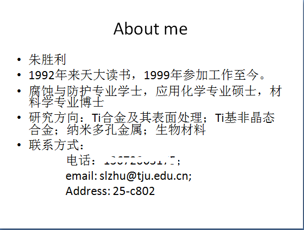 关于机械工业出版社石德珂编写的材料科学基础的课件,用于天津大学材料学院授课,主讲人为朱胜利老师,考研以及需要的同学可以看看(ps:请虫友不要泄露朱老师的手机号,) 金属塑性变形.png 金属学.png 晶体学.png 三元相图.png 主讲人.png [ Last edited by 々暧-〃 on 2014-11-22 at 10:53 ] |