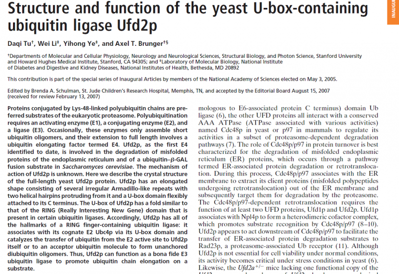 请问有没有人知道“yeast U-box-containing ubiquitin ligase",简称“Udf2p”?它是醛脱氢酶吗?