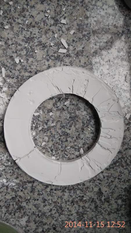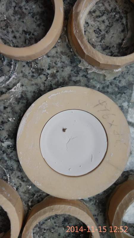 1、凝胶成型氧化铝陶瓷环在干燥的时候就会出现开裂现象,但是做大型陶瓷圆板(直径大概有18cm左右)的时候就不会,这是什么原因? 2、同样的配方已经制备方法,做小型(直径在5-6cm以内)氧化铝陶瓷圆板的时候也会中间凹陷下去甚至洞穿,这又是咋回事呢? IMG_20141115_125225.jpg IMG_20141115_125233.jpg |