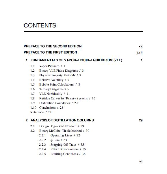 免责声明:本资料仅供个人学习、研究之用,严禁用于任何商业目的,请下载后自觉在6小时内自行删除。如违反,由此引起的一切后果均由其本人承担,本人不承担任何责任或相关、连带责任! Table of Contents Preface xi 1 Fundamentals of Vapor-Liquid Phase Equilibrium (VLE) 1 1.1 Vapor Pressure 1 1.2 Binary VLE Phase Diagrams 3 1.3 Physical Property Methods 7 1.4 Relative Volatility 7 1.5 Bubblepoint Calculations 9 1.6 Ternary Diagrams 10 1.7 VLE Nonideality 12 1.8 Residue Curves for Ternary Systems 18 1.9 Conclusion 26 2 Analysis of Distillation Columns 27 2.1 Design Degrees of Freedom 27 2.2 Binary McCabe-Thiele Method 28 2.3 Approximate Multicomponent Methods 38 2.4 Analysis of Ternary Systems Using DISTIL 41 2.5 Conclusion 44 3 Setting up a Steady-State Simulation 45 3.1 Configuring a New Simulation 45 3.2 Specifying Chemical Components and Physical Properties 53 3.3 Specifying Stream Properties 58 3.4 Specifying Equipment Parameters 60 3.5 Running the Simulation 64 3.6 Using "Design Spec/Vary" Function 66 3.7 Finding the Optimum Feed Tray and Minimum Conditions 80 3.8 Column Sizing 81 3.9 Conclusion 84 4 Distillation Economic Optimization 85 4.1 Heuristic Optimization 85 4.2 Economic Basis 87 4.3 Results 89 4.4 Operating Optimization 91 4.5 Conclusion 97 5 More Complex Distillation Systems 98 5.1 Methyl Acetate/Methanol/Water System 98 5.2 Ethanol Dehydration 112 5.3 Heat-Integrated Columns 122 5.4 Conclusion 129 6 Steady-State Calculations for Control Structure Selection 130 6.1 Summary of Methods 131 6.2 Binary Propane/Isobutane System 133 6.3 Ternary BTX System 137 6.4 Multicomponent Hydrocarbon System 141 6.5 Ternary Azeotropic System 145 6.6 Conclusion 150 7 Converting From Steady State to Dynamic Simulation 151 7.1 Equipment Sizing 151 7.2 Exporting to Aspen Dynamics 153 7.3 Opening the Dynamic Simulation in Aspen Dynamics 156 7.4 Installing Basic Controllers 158 7.5 Installing Temperature and Composition Controllers 166 7.6 Performance Evaluation 179 7.7 Comparison with Economic Optimum Design 184 7.8 Conclusion 187 8 Control of More Complex Columns 188 8.1 Methyl Acetate Column 188 8.2 Columns with Partial Condensers 190 8.3 Control of Heat-Integrated Distillation Columns 209 8.4 Control of Azeotropic Columns/Decanter System 222 8.5 Conclusion 231 9 Reactive Distillation 232 9.1 Introduction 232 9.2 Types of Reactive Distillation Systems 234 9.3 TAME Process Basics 238 9.4 TAME Reaction Kinetics and VLE 241 9.5 Plantwide Control Structure 246 9.6 Conclusion 250 10 Control of Sidestream Columns 251 10.1 Liquid Sidestream Column 252 10.2 Vapor Sidestream Column 257 10.3 Liquid Sidestream Column with Stripper 264 10.4 Vapor Sidestream Column with Rectifier 271 10.5 Sidestream Purge Column 281 10.6 Conclusion 290 11 Control of Petroleum Fractionators 291 11.1 Petroleum Fractions 292 11.2 Characterization of Crude Oil 296 11.3 Steady-State Design of PREFLASH Column 304 11.4 Control of PREFLASH Column 311 11.5 Steady-State Design of Pipestill 316 11.6 Control of Pipestill 333 11.7 Conclusion 342 Index 343 下载地址: 链接: http://pan.baidu.com/s/1i3moY3r 密码: 3hs9 |