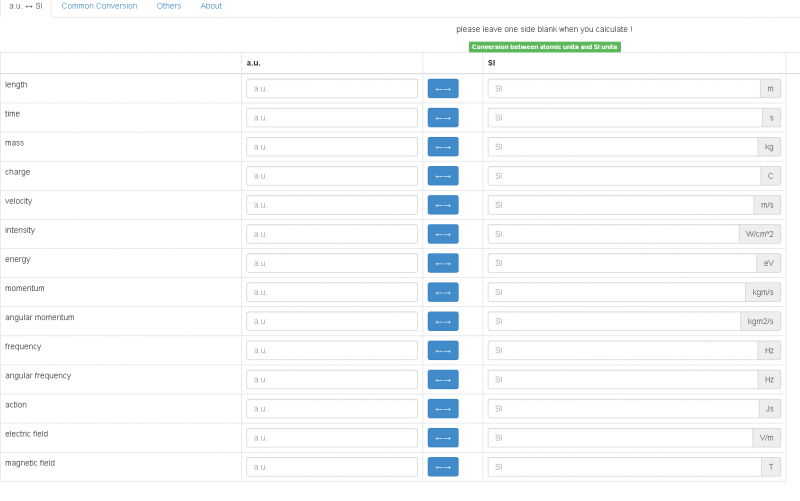 学物理,教学或科研经常遇到单位转换或简单公式计算。每次都要按照公式把数据输入到计算器, 或者打开matlab等软件输入公式计算,还要翻书、看转换系数很繁琐。 网上也没有找到合适的网页,大部分都包含的不常用的转换,再者就是广告太多。鉴于此, 我自己制作了一个简洁的网页来转换物理单位,例如原子单位和国际单位之间的转换。 还有就是能量转换, 压强转换等以及常用的公式等, 以后也不断更新补充。希望能给大家也带来方便, 特在此分享! 有任何问题和建议请留言, 同时大家也可以将自己常用的、需要经常转换或计算的发出来, 我统计下然后添加到 该页面中。 网址是: http://www.hi.is/~jil3/Conversion/Conversion.htm |