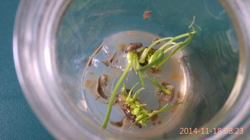 百合萌芽后转接到新的培养基,会出现如图所示的情况,打开瓶盖无任何异味(应该不是染菌了),百合也很新鲜,还在生长,但是偶尔有几瓶会出现如图所示的黑色的液体,培养时间久了会导致其萎蔫,请问是怎么回事?有没有可能是百合本身的次生代谢产物,我可以直接用培养基做检测吗? 组培图片.jpg |
