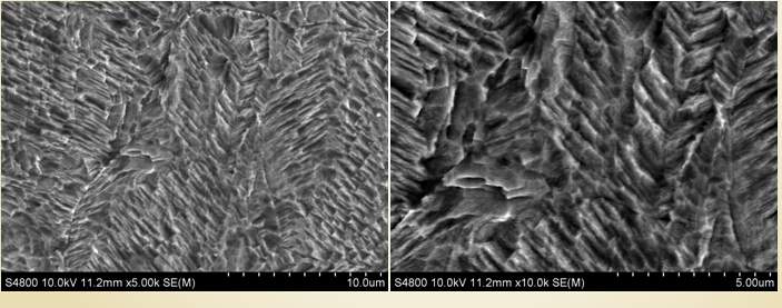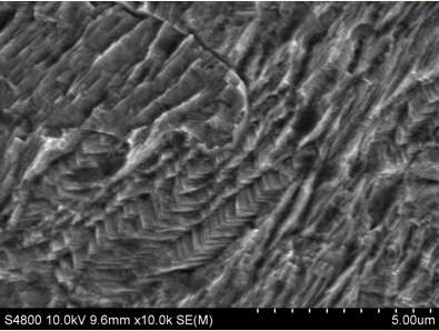 这个只能看出有很多片层状的突起,不能确定是孪晶还是滑移带形成的