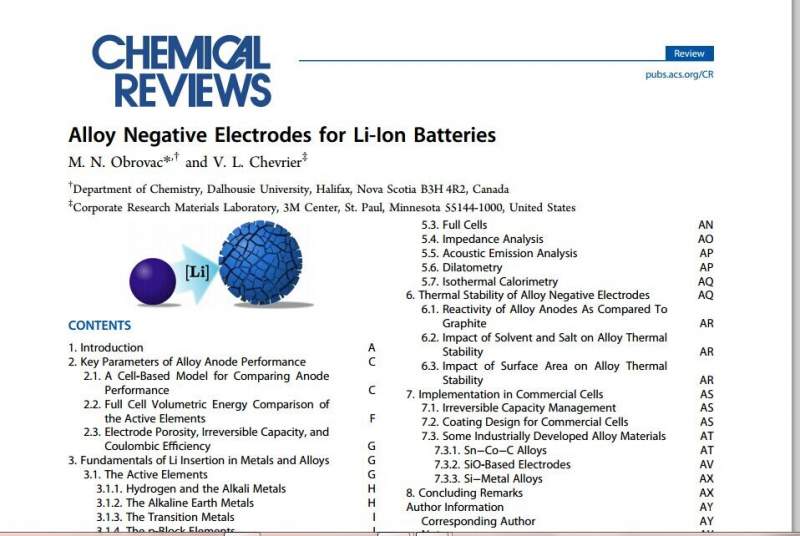 Chemical Reviews最新综述:用作锂电池负极材料的金属氧化物与含氧盐