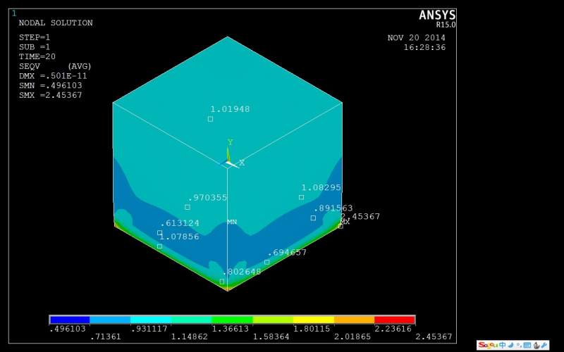 求助1X1X1m的立方体表面施加1N的荷载,得到的应力不是1Pa......请大虾们解释下 已有5人参与