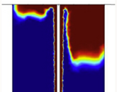 上面那个是我做的模拟,下面那个是别人论文中的结果 从总体上看,好像差不多,但是我的结果中边缘时翘起的,最主要的是,他看起来好像是对称的, 用了了好多模型都有这个对称的结构,不知道怎么办,特来求助,多多拜谢 燃烧温度场 |