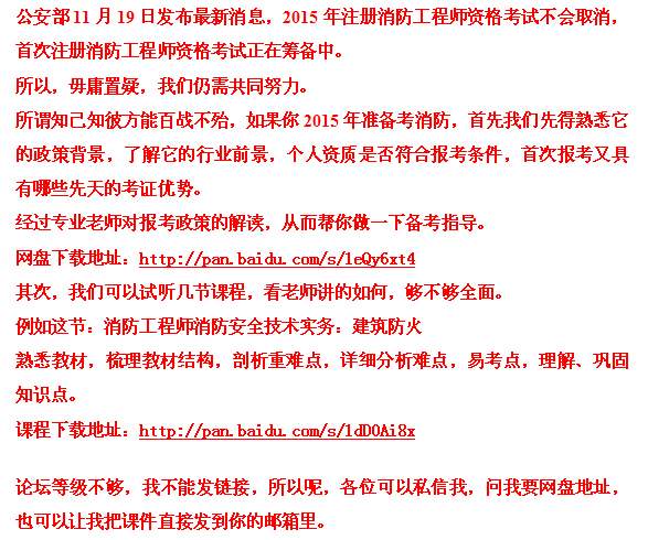 公安部11月19日发布最新消息,2015年注册消防工程师资格考试不会取消 已有3人参与