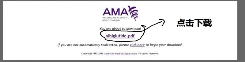 第一步:将下面的链接复制粘贴到网址栏,进入该网址,而不是直接点击该链接! www.ama-assn.org/resources/doc/usan/albiglutide.pdf 得到如下界面,免费注册账号 第二步:登陆后可加如下albiglutide的下载界面,点击下载即可。 最后附上一个albiglutide的样本文件 |
