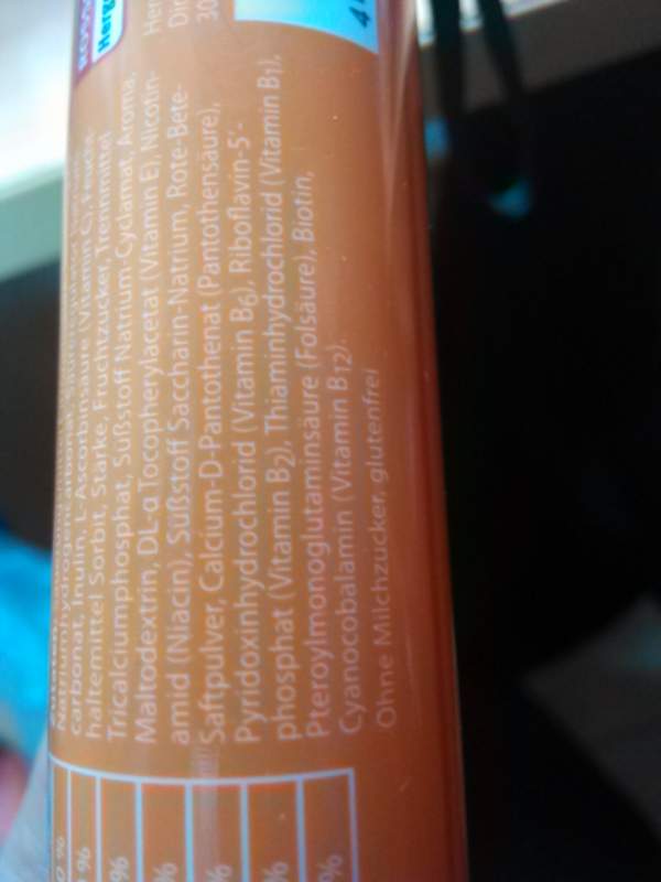 以下四张照片是两种泡腾片的说明书,请哪位牛人帮忙翻译一下呗,就只要翻译zutaten那部分就行了,橙色瓶和蓝色瓶分别翻译,跪谢。 IMG_20141120_211347.jpg IMG_20141120_211418.jpg IMG_20141120_211959.jpg IMG_20141120_212018.jpg |