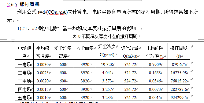 大家好,你们知道怎么计算电除尘器的振打周期吗?我按照文献上看到的步骤来计算,结果末电场周期太大了,不符合事实。大家帮忙看一下吧,谢谢啦!