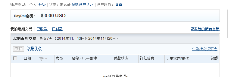 本人已经注册paypal账户, 基本情况见附图