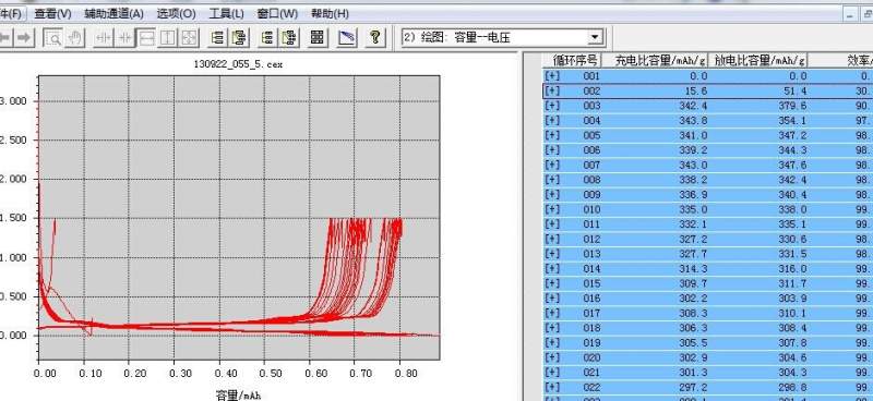 这个是最近补数据时出现问题的样品,弄不清楚原因才在小木虫上求助的,这个比以前测得数据容量低很多,循环性能也不好,关键是首次嵌不进去锂。希望和万能的虫友讨论下是什么原因造成的。