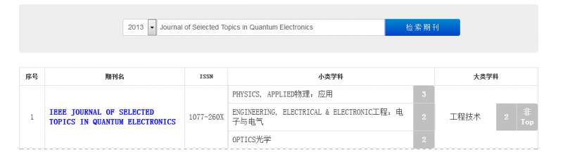 50金币求IEEE Journal of Selected Topics in Quantum Electronics 2014最新分区情况 已有2人参与