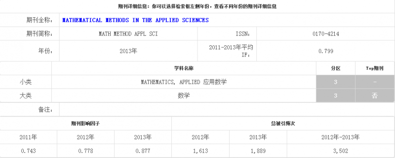 谁能帮查一下如下三个期刊的大类分区:ABSTR APPL ANAL,1085-3375;APPL MATH MODEL 0307-904X;MATH METHOD APPL SCI 0170-4214。谢谢! |