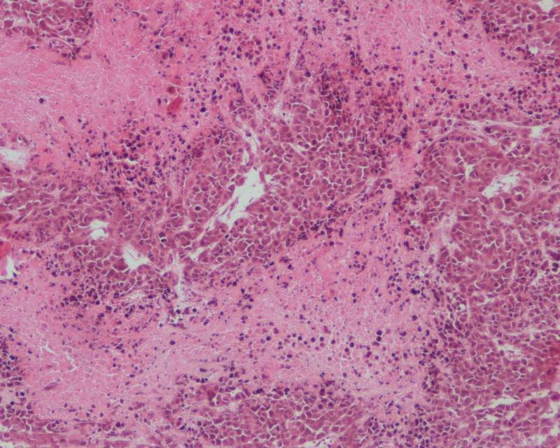 这个让我怎么说呢,你看第三张图,正常细胞外间质你见过吧,你再看看这张,大量的红细胞渗出,放大的话我差点当成混合血栓。。不过出血肯定是有的