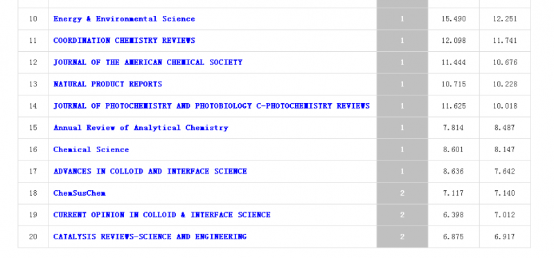 ÇóÖú×îÐÂJCRµÄSCI·ÖÇø»¯Ñ§ÀàÒ»ÇøºÍ¶þÇøÆÚ¿¯Ò»ÀÀ±í½ØÍ¼~-5