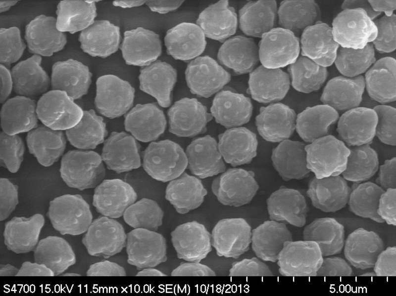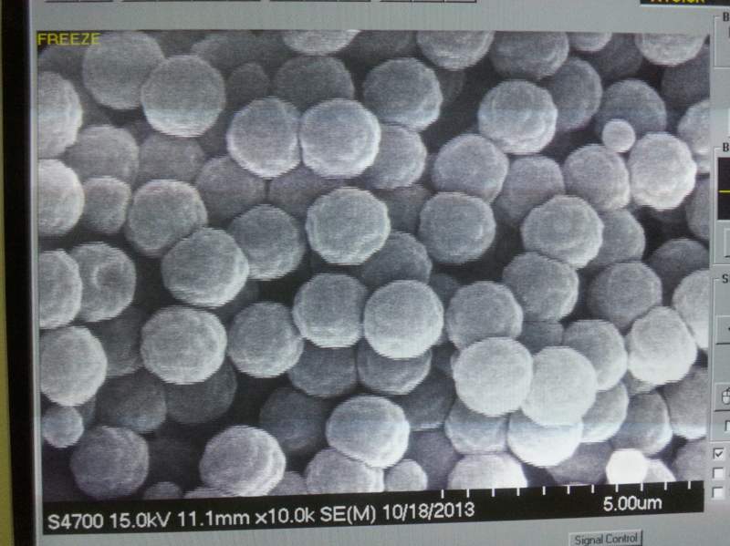 不同条件做的交联PS球如图,目前没有得到均一性和成球性很好的微球。我想做直径大于1微米的球,如果直径能到几个微米就更好了,看到有些厂家的高交联球SEM图片非常漂亮,希望有高手能够指点一下,谢谢!