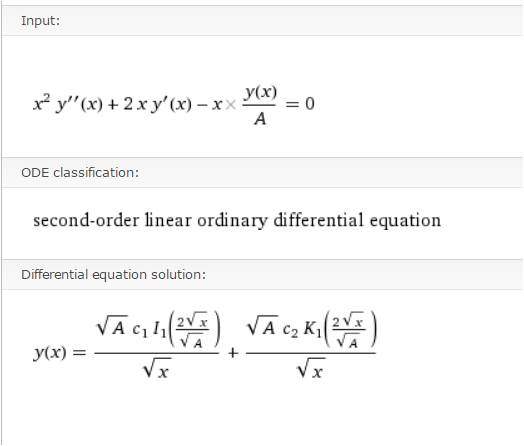 现有二阶变系数线性微分方程:不知道怎么求通解,找了半天方法,也不知道特解是什么,于是在网上找个求解微分方程的网站http://www.wolframalpha.com/widg ... 3943960b5197efd3f2a,给出的答案看不懂:c1,c2可能是常数,但是I1,K1是个什么函数啊,求解释,或给个解二阶变系数线性微分方程的详细步骤。多谢 equation.jpg |