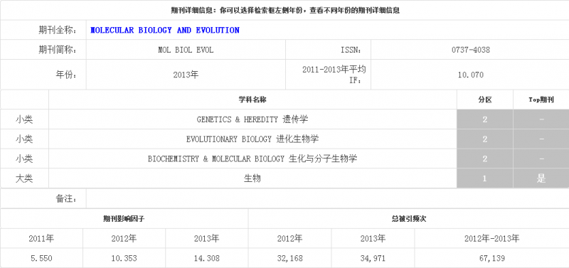 MOLECULAR BIOLOGY AND EVOLUTION期刊基本信息 http://www.letpub.com.cn/index.p ... ;amp;journalid=5941 |