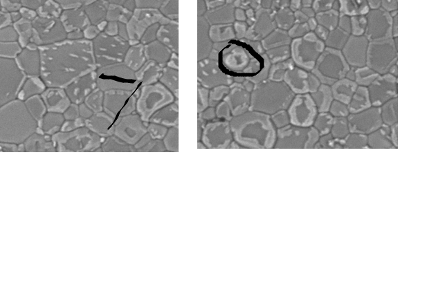 从SEM上看,不知道是什么组分的陶瓷材料,但是从晶界上看,可能是由于退火时间较长或降温速度过慢,导致晶界处晶体向内生长的情况。
