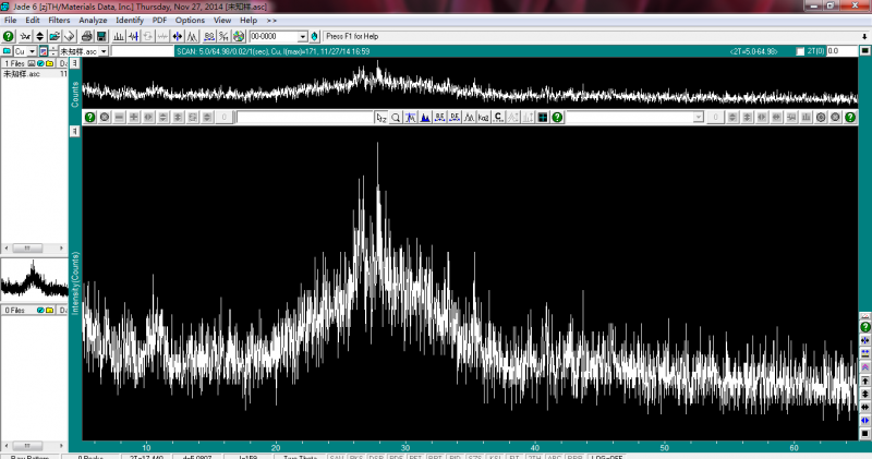 这个图一看如上边大神说的是无定型,也就是非晶型物质,应该是不好分析的,你这么看峰是看不出什么效果的,你做一下平滑处理,要是想看准确的峰,你可以用origin做一下图看看,那里边看峰应该还清晰点