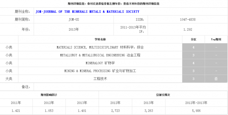 求助冶金类3个期刊的2014中科院分区,需截图说明