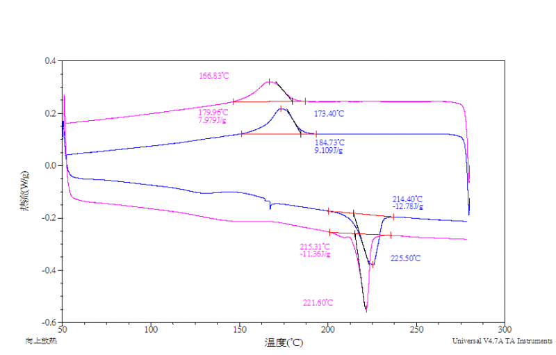 之前很少用DSC来研究结晶度,最近实验发现,第一次升温的结晶度不消除热历史的结晶度高,而且冷却结晶温度也较消除热历史的温度高.
