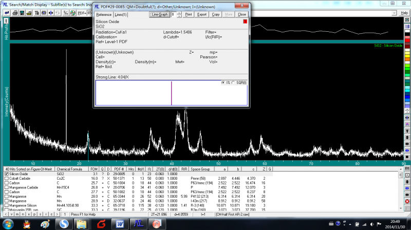 最近做了一个样品的XRD,材料中混有石英砂,也就是二氧化硅,XRD扫出来的图像有个比较尖锐的峰,对应的标准卡片是SiO2 PDF#29-0085,这个标准卡片中只有一个峰,难道说明我这个样品中的SiO2是单晶么?SiO2是与其他材料物理混合,,扫XRD之前,挑出来一部分,但是还有少量的残留,这个该如何解释,看看能不能把图放上来