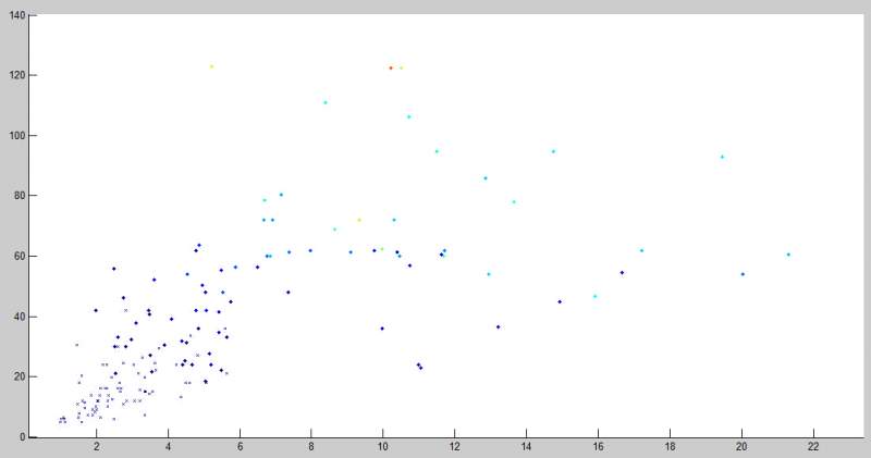 划分一张散点图上两种数值之间的边界或是过渡范围