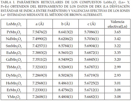 GdMn2O5 crystallizes in the centrosymmetric Pbam space group. Manganese ions are found in two oxidation states, Mn4+ (Wyckoff position 4f, 0,0.5,0.2551) and Mn3+ (Wyckoff position 4h,0.4118,0.3518,0.5), respectively in octahedral and square-pyramidal environments. The octahedra share edges to form chains along the c-axis. In the ab-plane, Mn polyhedra share edges and corners to form layers that can be viewed as an alternate stacking along b of ziz-zag ...Mn4+-Mn3+-Mn3+-Mn4+... chains running along the a-axis. The Gd3+ cations form GdO8 polyhedra which are located on position 4g (0.1395,0.1716,0) and separate the adjacent ”Mn” ab-layers. |