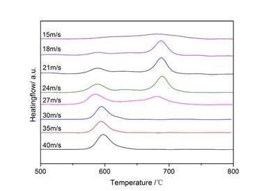 1图为用快淬法在不同轮速条件下制备的样品的XRD;2图为对应的DSC。从图中可以看出,非晶成分多的样品一步晶化,而非晶量少的样品两步(至少)晶化。随着非晶成分变化而对应的晶化过程的变化趋势明显。如何解释该问题,样品非晶含量为何影响晶化过程? 谢谢各位高手了! 1 2 |