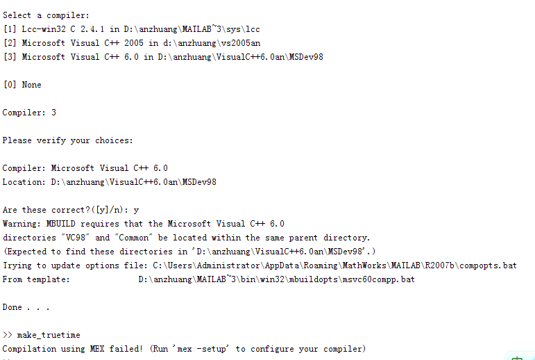 我是要用truetime的,在这之前要先设置matlab编译器,可是编译器总设置不成功,make_truetime 时总是显示失败,求大神指点!