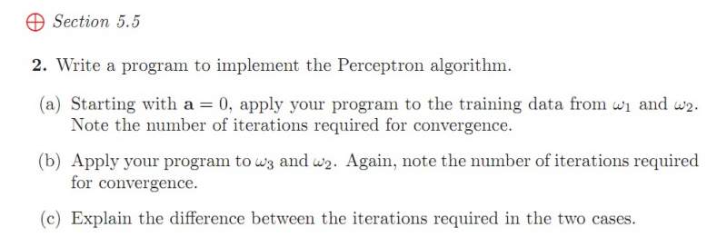 | 请问Duda的pattern classification 第5.5题什么意思?怎么解决?原题在323页,有6列的数据,要求用perceptron做,先处理omega1和omega2,再处理omega1和omega3列。 |